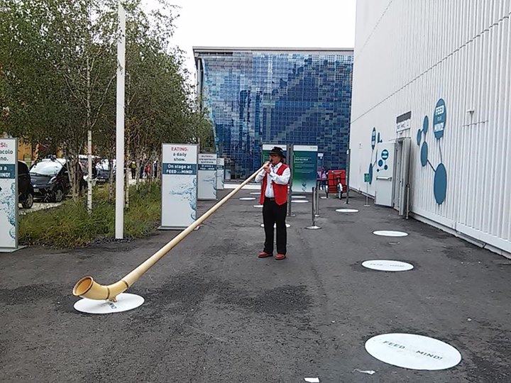 そんなスイス館の前ではアルプ・ホルンの演奏が行われていましたよ。