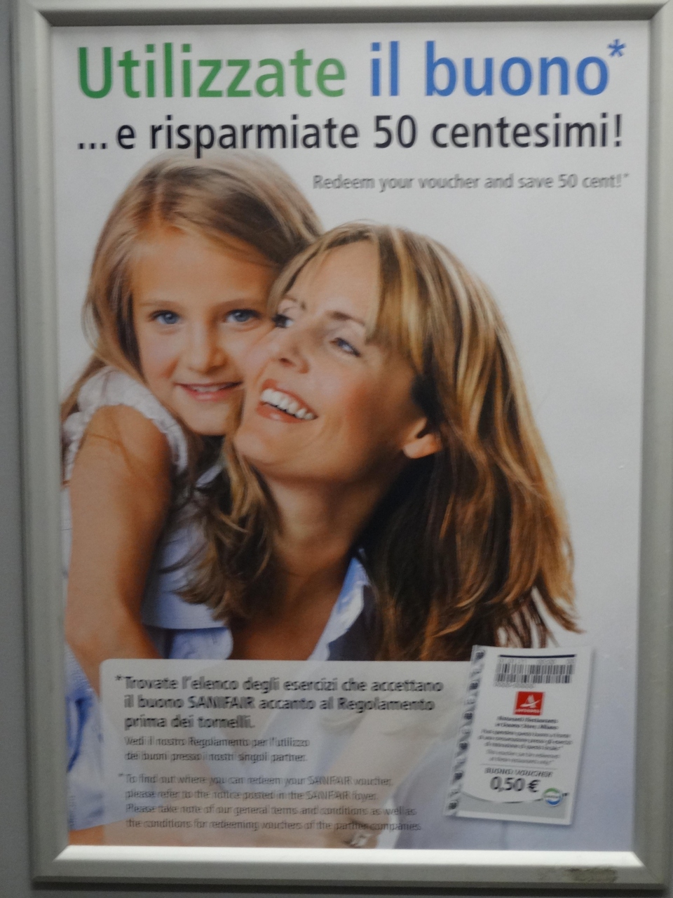 ドゥオモ広場に面したアーケードの入り口の右側に「MOTTA」というお店があって、そこの地下に有料トイレがあります。