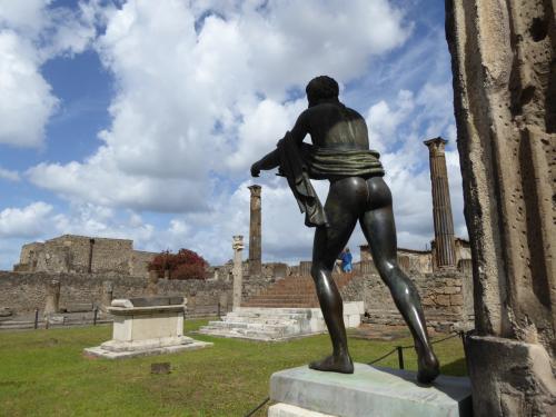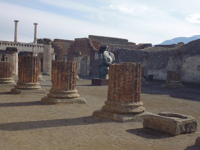 10時頃、ローマからイタロの特急でナポリへ。1時間程で到着。でも料金は7500円程。まあ、特急で行くのも悪くなし。ナポリ中央駅で、沿岸線を走る別の会社の列車に乗車。案内表示を見て、探せばありますね。3.3ユーロで、ポンペイ駅へ。ということで、無事世界遺産観光できました。(今回は奮発してガイド付きツアーに参加してみた。なんたってとにかく広いので。イタリア語と英語の混じったツアー、、理解するのに疲れてしまった。(44ユーロ)