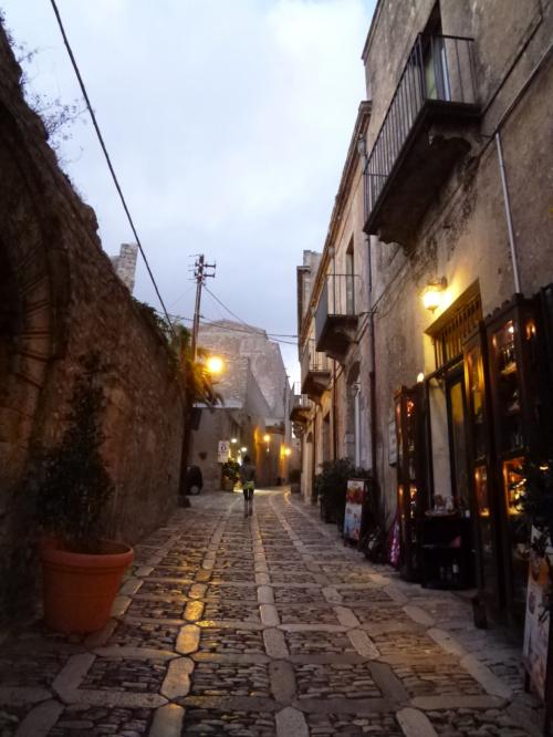 下界のトラパーニは猛烈に暑くでもエリーチェは冷たい風で寒いです。
