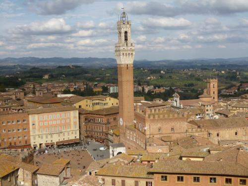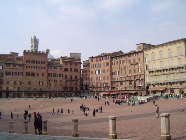 4月のシエナは気温などは日本とあまり差はないと思いますが、 晴れている日は特に快適です。 暑過ぎず、寒過ぎず、旅行日和という感じがします。 日向ぼっこも快適で、 カンポ広場には陽射しを浴びながら談笑しているグループも多く見かけました。