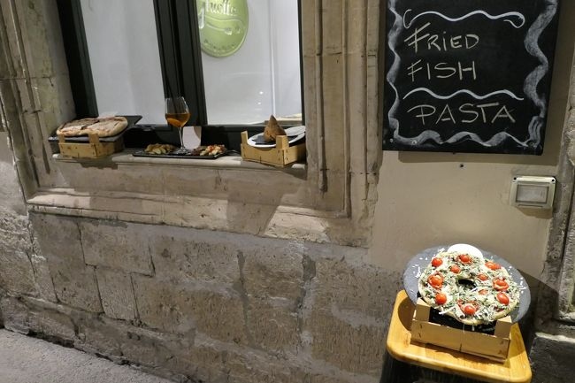 店先にはたくさん盛られたアペリティーヴォのおつまみが展示されていて驚きものです。