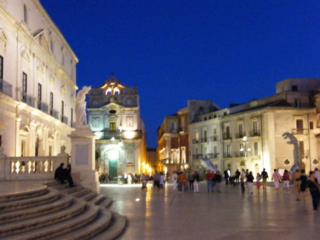 2009年5月に夫婦で訪問しました。オルティージャ島のホテルに宿泊しました。日が落ちると、ドゥオーモ広場などは大変明るくライトアップされ、大勢の観光客が楽しんでいます。海沿いの通りなどは人が歩いていますが、少し中に入ると人通りは減ります。旅行者としての一般的な注意をしていて、トラブルはありませんでした。