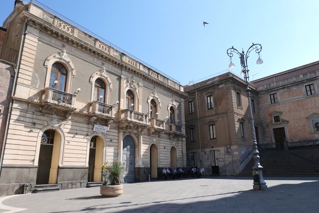 2つの教会に囲まれた大変美しい広場で、教会の向こうにエトナ山が顔を覗かせています。