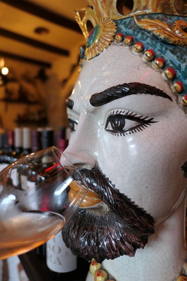 通りに並べられた椅子に座ってのんびりとシチリアのワインとおつまみを頂けました♪