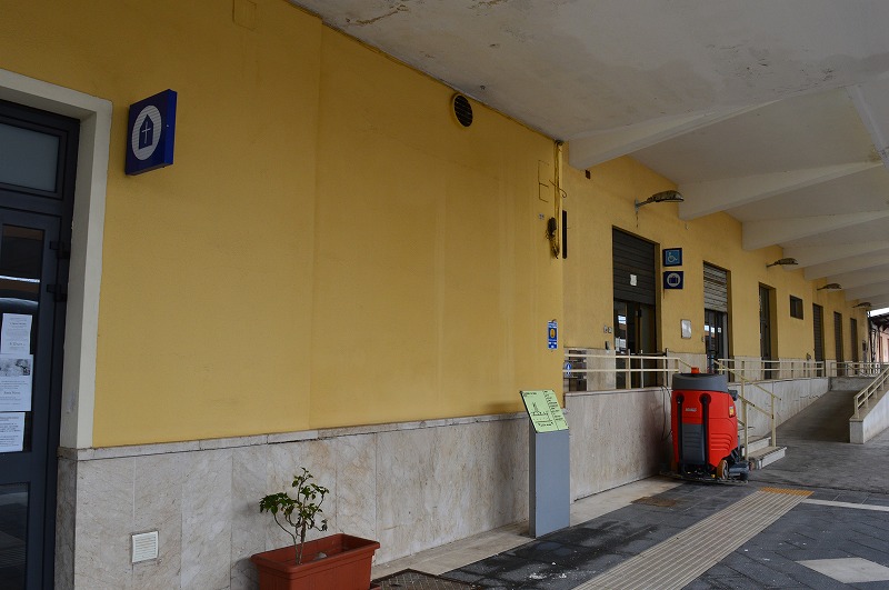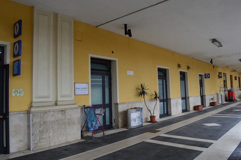 荷物一時預かり所は1番線ホーム(駅舎側)の北東寄り(メッシーナ寄り)にあります。ホームの中央辺りからは直接見えませんが、トイレ、礼拝室を過ぎた辺りまで来れば、預かり所が見えます。料金は1つ3ユーロでした。なおカターニア中央駅のホームにはエレベータがついていません。ホームからホームへの移動は、荷物類を持って階段を上り下りすることになります。 -
