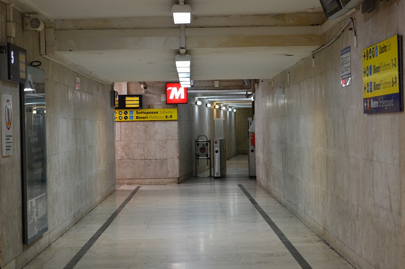 メトロのホームは、カターニア中央駅の地下通路を通り抜けた一番海側です。メトロのホームには切符売り場はありませんので、事前に駅のバルで購入してください。また、メトロの運転本数はさほど多くありませんので、ボルゴ駅までの時間には十分ゆとりを持ってください。 -