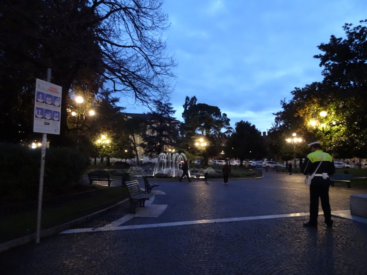 ベローナの街の中心部にあるアレーナ前の広場にいた警察官です。
