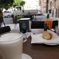 甘い菓子とラッテマッキアートを頂きながら、