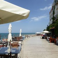 2018年7月にローディ・ガルガーニコRodi Garganico(フォッジア県ビエステ地区)に行きました♪♪ 新市街と旧市街の間に車を停めて旧市街へ歩く。 ガルガーノ半島の入り口に当たるローディ・ガルガーニコ。 ローディ・ガルガーニコはオレンジやレモンなどの柑橘類が有名で、 ガルガーノ半島の特産。 旧市街は海岸からの断崖上に広がり、 周囲は天然の要塞。 かつて城壁や城があったが失われている。 旧市街のメインストリートであるCorso Umberto1を歩き進む。 白をメインとした建物が多く、明るい。 リゾート雰囲気がいっぱい。 Corso Umberto1の先はPiazza Rovelli。 かつての旧市庁舎やパラッツォが並び、 優雅な雰囲気。 ランチタイムなのでその一角にあるフリット専門店にしよう。 「I Fritti di Mina」。 テラスで冷たい生ビールを飲み干す。 海鮮フリットは香ばしくで美味しい。 サクサクとジューシーでうまみたっぷり。 周囲の旧市街景観を眺めながら。 細い路地を歩くとパン屋さんが。 その壁画は可愛くて素晴らしい。 壁画についてサルバトーレさんと話しているところ、 聞きつけた店主が出てきた。 壁画について楽しく談笑。 さよならして旧市街の奥へ歩く♪ 本当に下町の雰囲気。 あちこちと生活音が漏れていて、 今も活き活きとしている。 旧市街の先端部に出ると展望が開ける。 青いアドリア海が美しい。 断崖に沿って歩くと 白い壁に美しい壁画がいっぱい。 華やいだ雰囲気。 リゾートをテーマにしたものが多い。 あちこちとブーゲンビリアが咲き誇り、 夏の風景は美しい。 眼下にリゾートヨットが並んでいる。 旧市街の北側に出ると断崖に沿ったプロムナードで展望が開ける。 青いアドリア海が美しい。 観光時間は2時間あれば十分です。 サン・セヴェーロSan Severoから鉄道がペスキチPeschiciまで伸びており、 理論上は鉄道で行けますが、 バスの交通網が発達しており、 サン・セヴェーロのほかにモリーゼ州のテルモリから出ています。 人気リゾート地のため宿泊施設は豊富にあります。 ローディ・ガルガーニコからペスキチを経てビエステへバスで行けます。 バスの場合は2時間かかると聞いています。