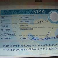 申請は2011年11月3日在キルギス、カザフスタン大使館において行いました。受領は1週間後となりましたが、7日、8日がキルギスの祝日、9日は水曜日でカザフスタン大使館の休館日でしたので、祝日を挟まなければもう少し早く受領できた可能性もあります。