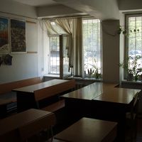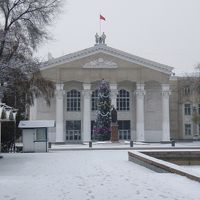 市内中心部、フィラルモーニア付近からトロリーバスですと、11番か14番で南にむかいます。マナス通りを真直ぐ南下して、11番トロリーバスの場合は左折、14番トロリーバスの場合は右折して直ぐのバス停で下車、徒歩5分位です。