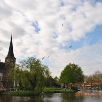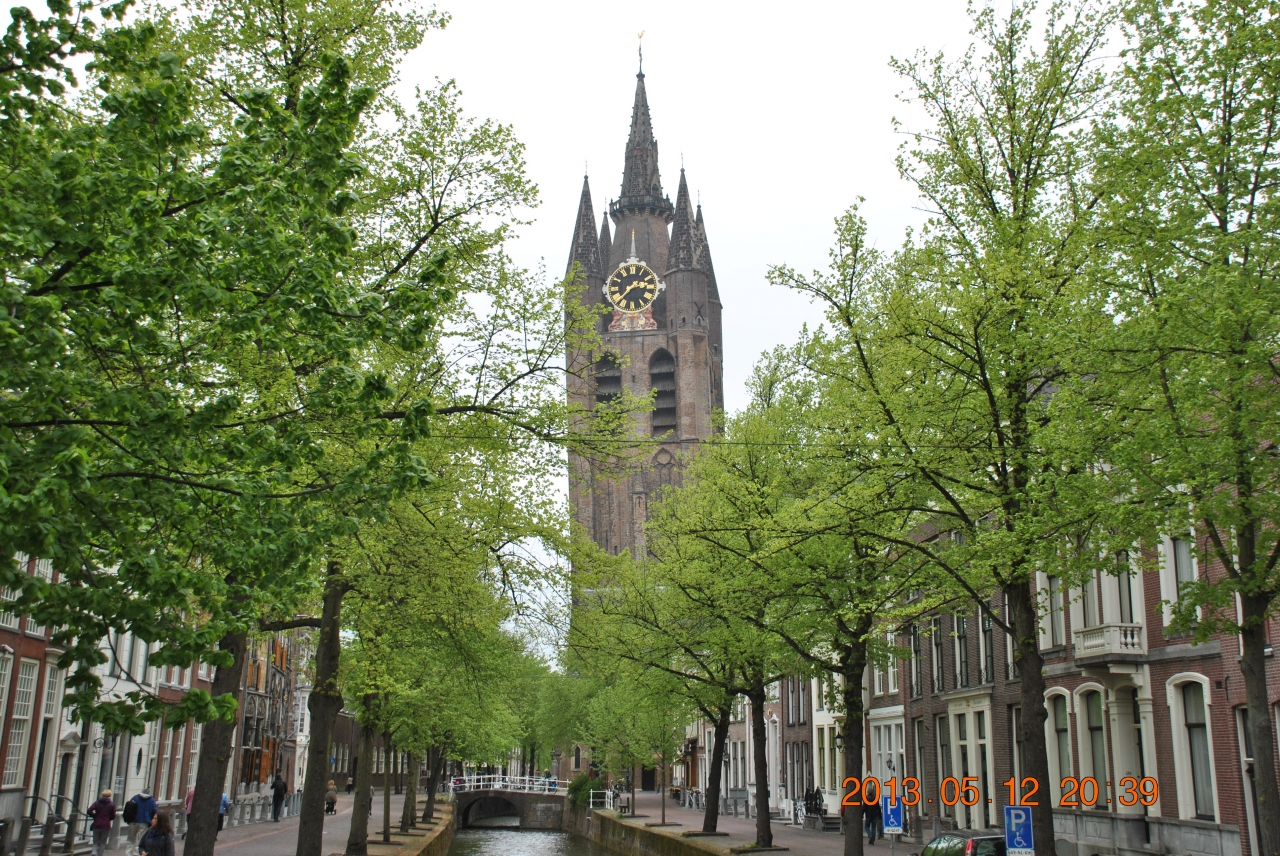 2013年5月11日にアムステルダムから日帰りしました。デルフト駅から市庁舎のあるマルクト広場まで5月の寒空の下を歩きました。寒いので広場に面した土産店に入るとストーブに火が点いており、しばらく暖を取りホッとしました。その後「デルフトの眺望」に描かれた場所に着いたころには晴れ間が覗き、寒さも遠のきました。