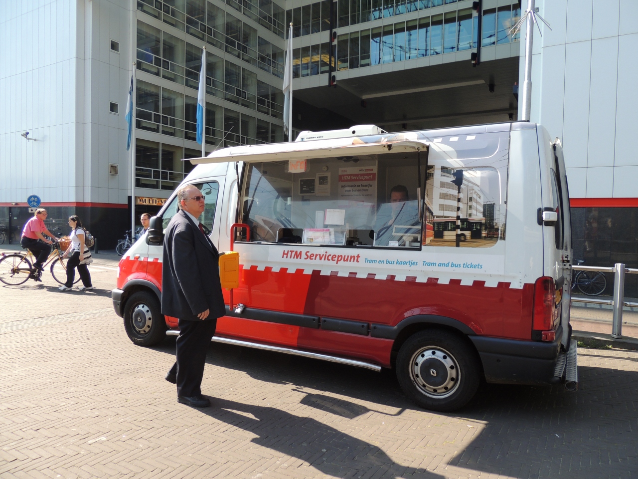 オランダパスに、24時間公共交通機関無料パスがついていたので、それを使用するためにはHTM officeに行ってパスとチケットを交換してもらわないといけません。HTMofficeの場所が分かりにくかったので、ご参考までに。中央駅のトラム通りを渡って、駅向かいのビルの前に小さいバンが止まっています。まるでホットドッグでも売っているかのようなバンです。それがハーグ中央駅のHTM officeでした。分かりにくっ!!