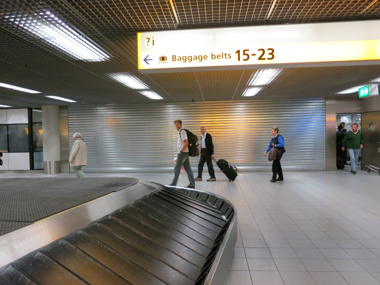 ・スキポール空港の入国手続き最中に、後ろの全部のシャッターが突然閉められました。係員も分からず、びっくりしたみたいです。入国手続きが終えた皆は荷物を取りいけないので、小さいドアを開けました。私が荷物を取った後でも、まだシャッターが閉められたままでした。