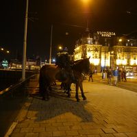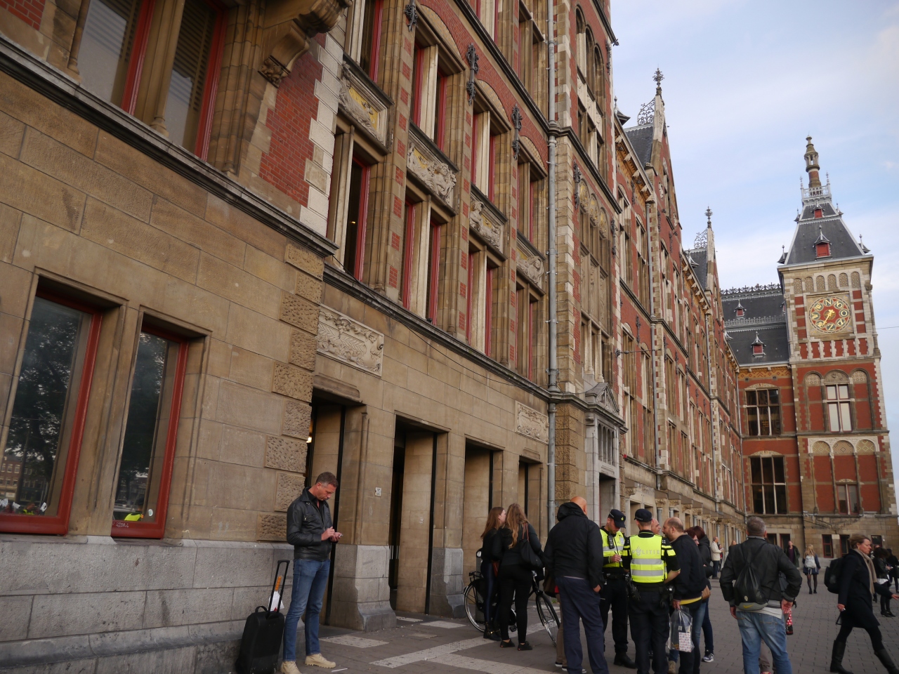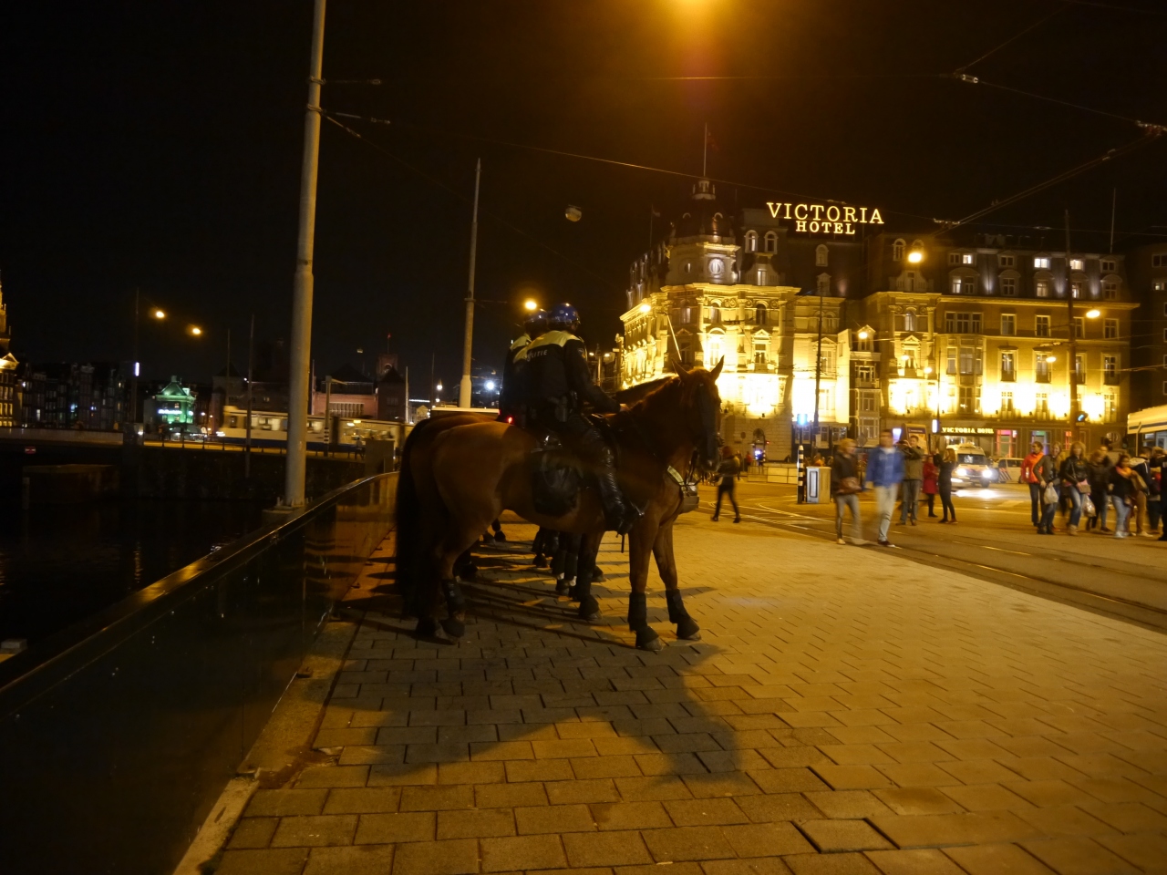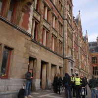 アムステルダム中央駅の駅前は、スリが非常に多いことで有名なのだそうで、警ら中の警官の姿があちらこちらに。