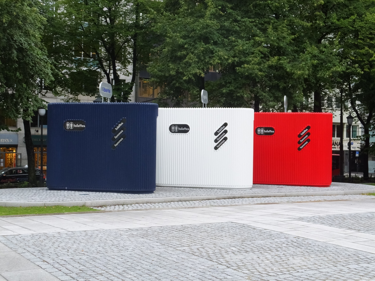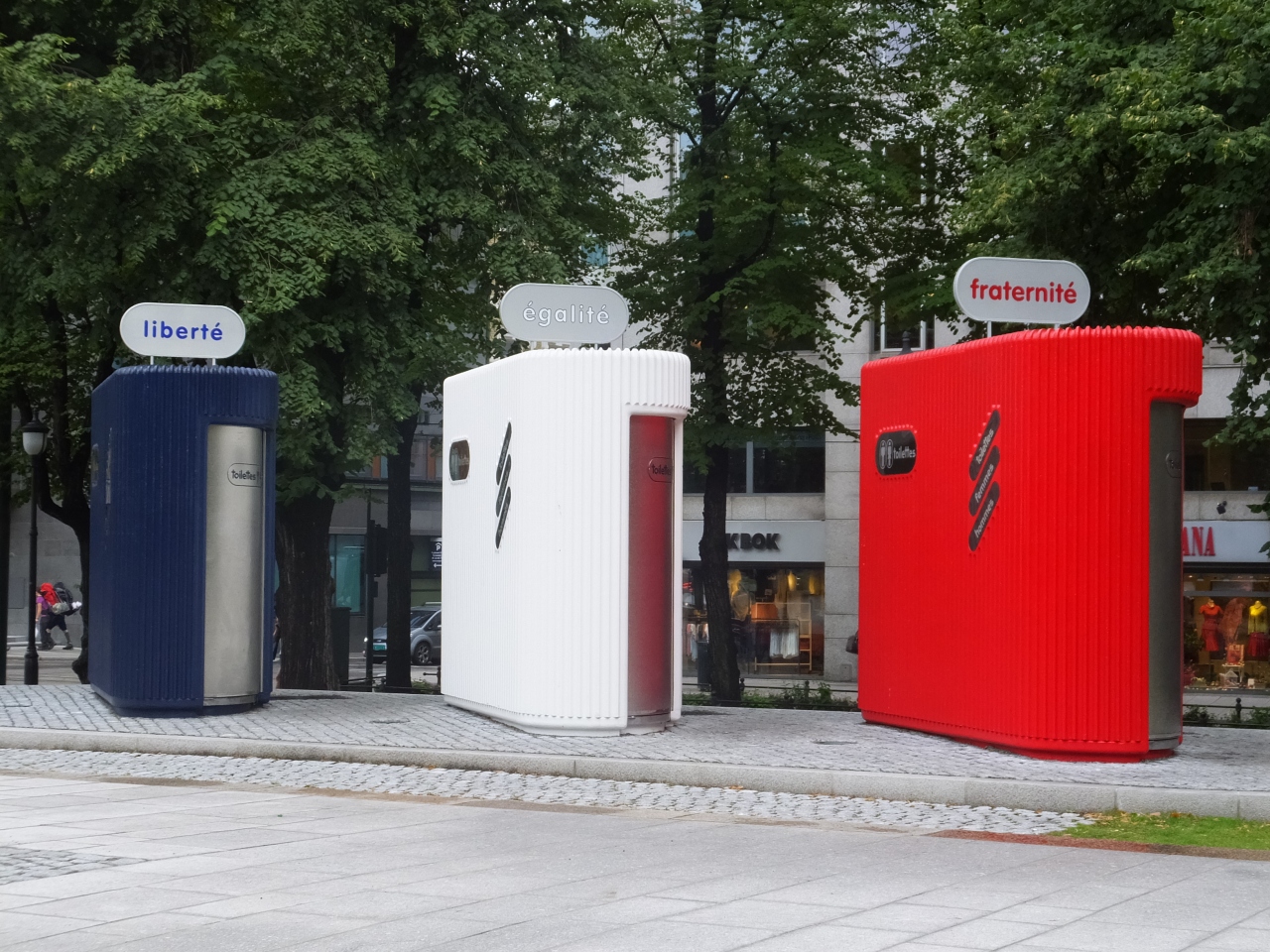 公衆トイレは有料のようですが、観光ポイントにあるトイレはどこも無料だったので、観光する分には困ることはありませんでした。カールヨハン通り沿いの公園にあった公衆トイレは、いかにも北欧デザインで、思わず写真を撮りました。