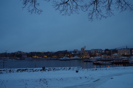 冬のオスロはかなり雪が多いようで、道一面、雪に覆われていました。滑りにくい靴を履いていくことが必要だと感じました。