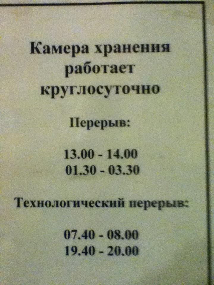 駅舎からホームに出るより、脇の階段から出た方が早いです。 荷物預かり所は、駅舎の中やホームではなく、駅に向かって左の半地下にあります。 たいていの荷物はロッカーに入れることになりますが、大きなスーツケースだと、受付の女の人に案内されて奥の部屋に荷物を置くことになります。 となると、営業時間外だと荷物が取り出せないので注意しなくちゃ、と内心びくびくでしたが、表の扉付近にあった時刻が休み時間で、それ以外はずっと利用できるようです。 待合室はロシアの駅によくあるように、駅舎の2階にあります。 でも、重い荷物を持って階段を上がるのがおっくうな場合、駅舎からちょっと離れたところにある切符売り場を待合室代わりに利用することができます。 ベンチはたくさんあるし、コーヒー・カフェオレなどの自動販売機もあります。 駅の放送もよく聞こえます。ロシア語でしか放送してくれませんが@