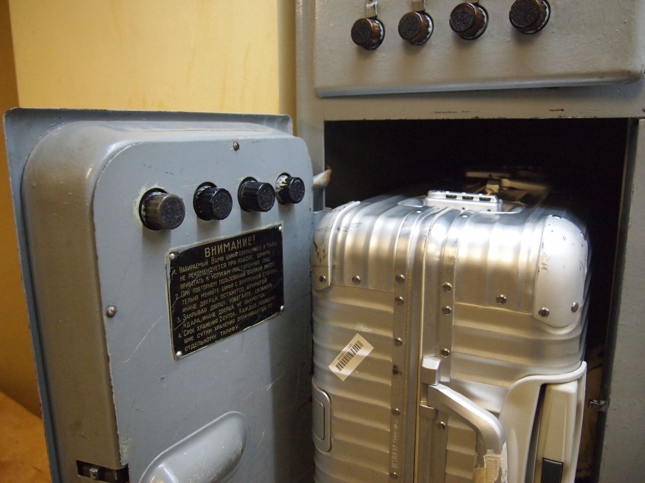 キジ島観光の拠点となるペトロザヴォーツク。 桟橋までは30分歩くことになるし、大きな荷物を持って、キジ島を観光することはできない。 そこで利用したいのが、ペトロザヴォーツク駅にある荷物預かり所。 私は見つけることができなかったので、駅舎のカッサのお姉さんに聞いて、案内してもらった。 駅のホームから階段を降りて左手にあり。 荷物預かり所の隣には小さなスーパー?コンビニがある。 鉄の扉を開けると、さらに扉がある。その奥には警備の人がいて、コインロッカーが並ぶ。 小さな窓口にオバサンがいて、130ルーブル支払うと、コインをもらえる。 コインロッカーの扉の中のダイヤルを好きな数字と記号で設定して、扉を締める。 警備のオジサンと窓口のオバサンが心配してくれて、手伝ってくれた。 24時間やっているらしく、扉に貼られた時間は閉まっている時間のよう。