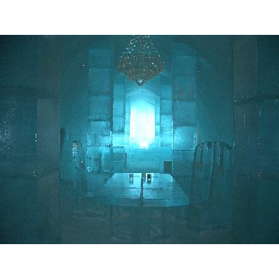 氷のホテルはユッカスヤルビにあります。私達はドゥンドレットからここまで電車やバスを乗り継いでいきました。ここはすべてが氷で出来ています。ベットまで氷で出来ており、その上にトナカイの皮が敷いてあります。その上で、寝袋にくるまって眠るようです。部屋にドアはありません。カーテンがドア代わりです。(ドアにすると、あかなくなり酸欠になると聞きました。)私達は宿泊せずに、観光しにいきました。記念に宿泊するのもいいかもしれませんね。ただ、内部はとても寒いです。防寒対策はしっかりしたほうが良いです。行ってから、風邪をひきました。ちなみに入場料は100Skrです。1時からガイドツアーがあります(入場料に込み)