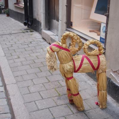 ストックホルムの街でも小さいサイズのヤギ人形が見られたりします。
