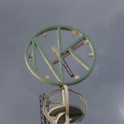 ビルの上に掲げてあるので、上を見上げてみてください!