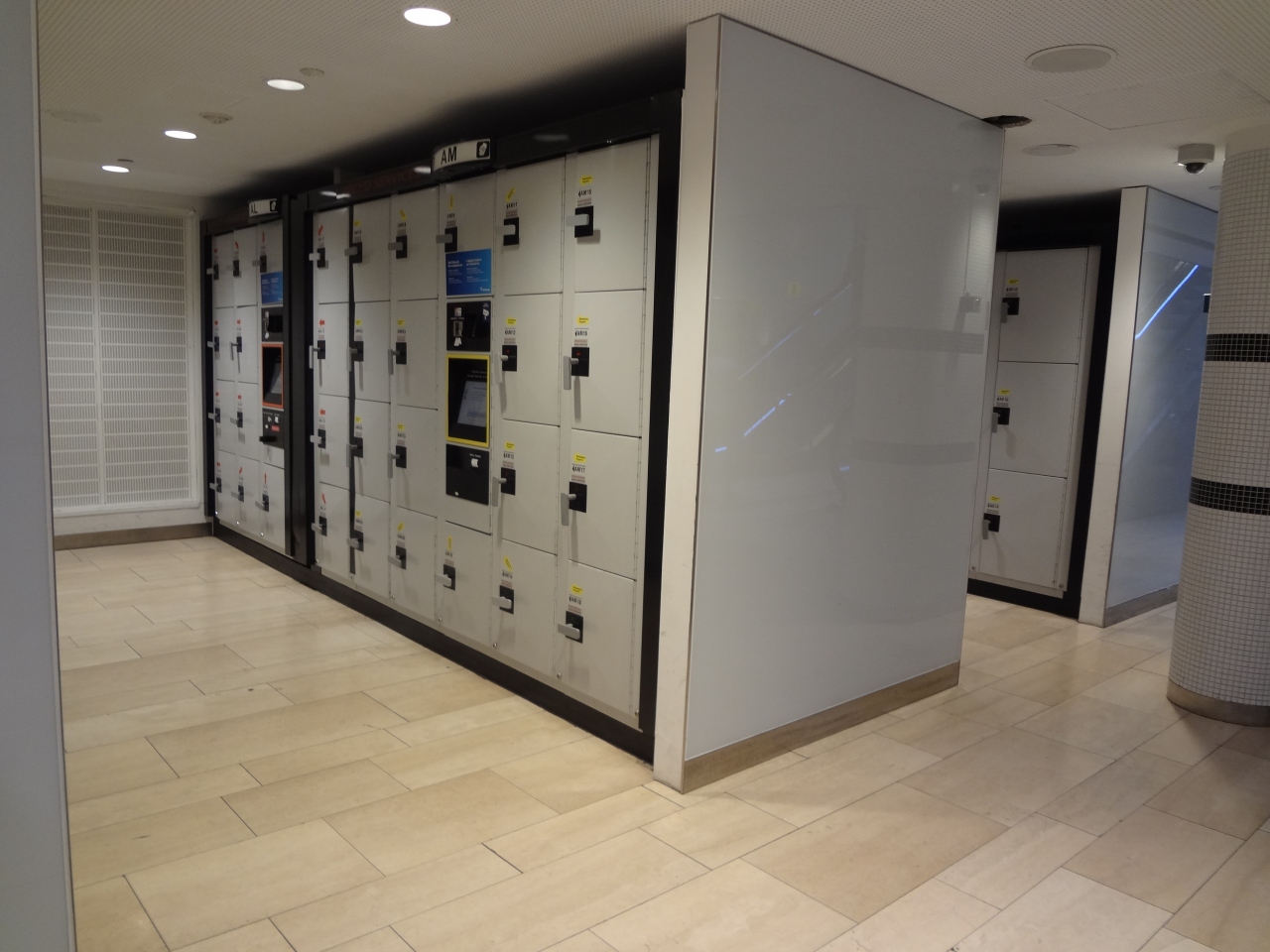 ストックホルム中央駅には両替所もありますが、ATMもありました。またいたるところでクレジットカードが使えるので、現金はそれほど使わないと思います。駅の中にはクレジットカード式のコインロッカーもあり、スーツケースも預けられました。