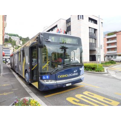 ロカルノ駅前はバスターミナルで、アスコーナなど各方面へ発着します。