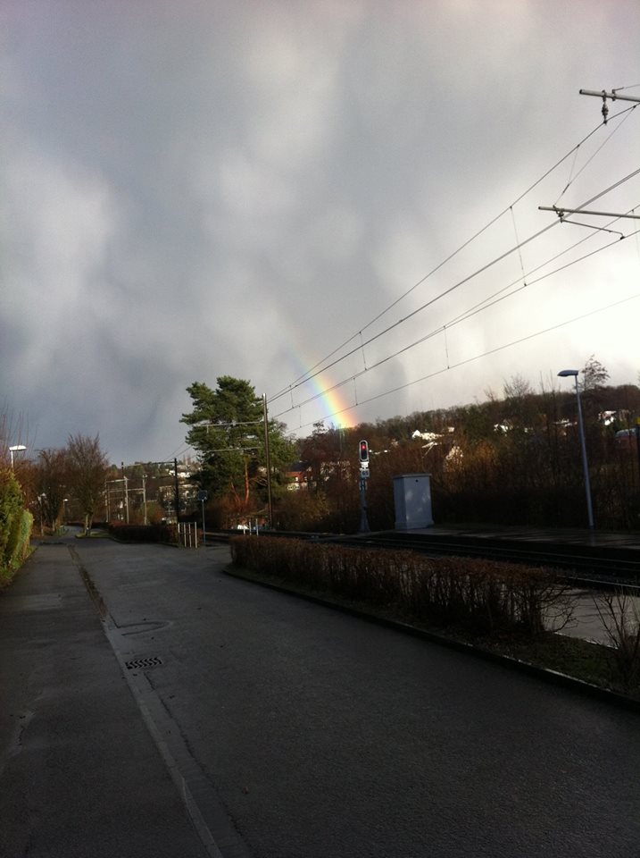 全体の大きな虹は数分で消えてしまったので、残念ながら写真に収めることはできませんでしたが、始まりの部分は色が濃く少し長めに残っていたので撮影できました。