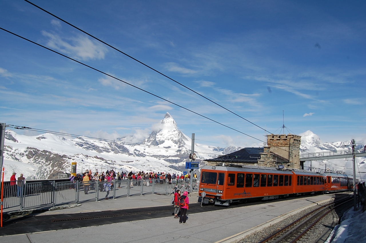 ツェルマットからゴルナーグラード鉄道で30分ほどで終点まで着いてしまうので、気軽ですが、ゴルナーグラード駅の標高は3,000メートルを超えます。酸素が薄く、息が上がるので、ゆっくり歩くべき。スケジュールには余裕を持った方が良いと思いました。