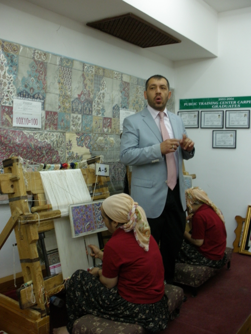 絨毯を造る工程やいろんな種類のトルコ絨毯を見学しました。