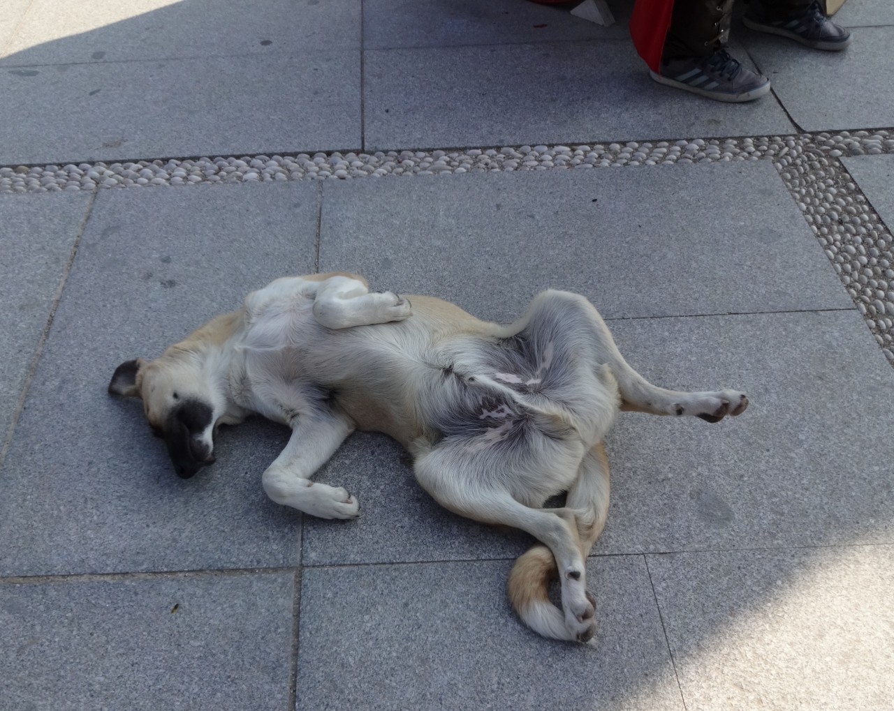 野良犬が、これほど無抵抗な姿をさらけ出す地域の治安が悪いとはとても思えません。