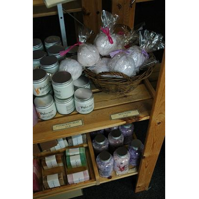 大きさは子どもの握りこぶしくらい。2種類あって一つはラベンダーの香りの薄紫色、もう一つはバラの花びらも入ったピンク色。