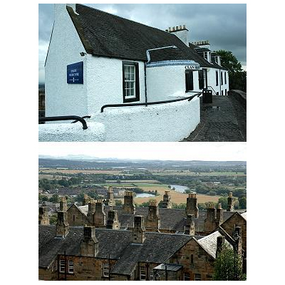 このお土産屋さんそばからはスターリングの町並みが眼下に広がり、お天気がよければウィリアム・ウォレスの記念塔方向の丘や山並みもきれいに見えます。私は使いませんでしたが、有料の望遠鏡も設置されてありました。