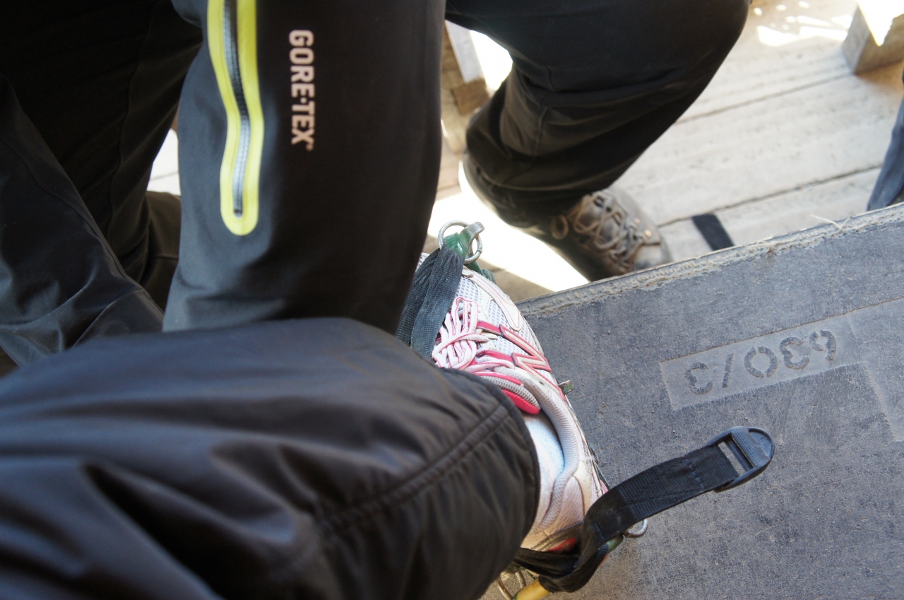 足元は、ちゃんとした登山靴の人が8割。スニーカーの人もいました。足にはアイゼンを付けるので、直接氷と靴底が触れ合うことはなく、足が冷たくなることはありませんでした。