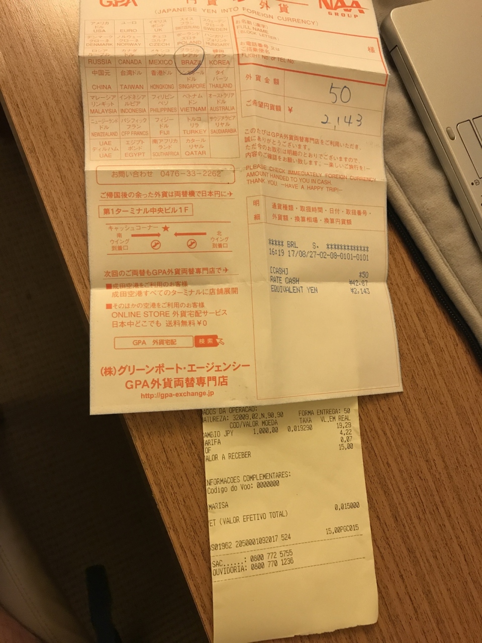 ブラジル訪問時のレアルについて、成田空港と両替、グルニョーアス空港内で両替したので報告します。成田の場合、1レアル:42.8円 グルニョーアス空港内での両替の場合1レアル:66.6円でしたので日本で両替した方が良いですね。