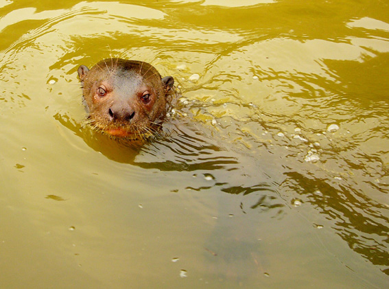 ホテルの桟橋からボートでくだった川に大カワウソ一族が住んでいて、