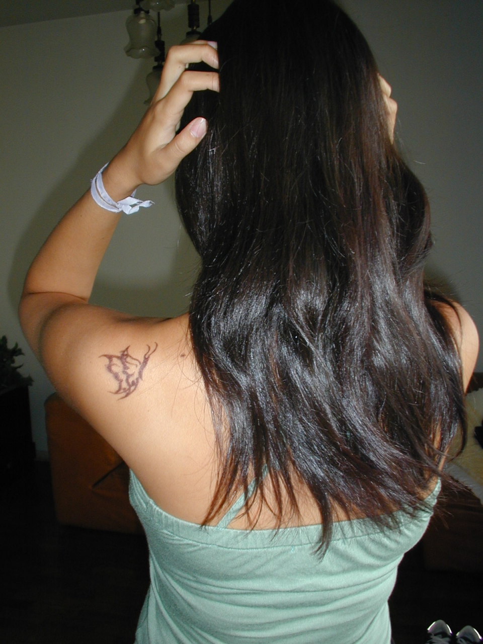 私は2週間くらいで消えるバタフライタトゥをしてもらいました。
