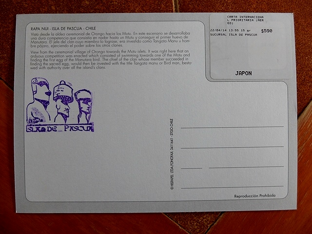 イースター島からは、投函してから25日ほど着きました。 -