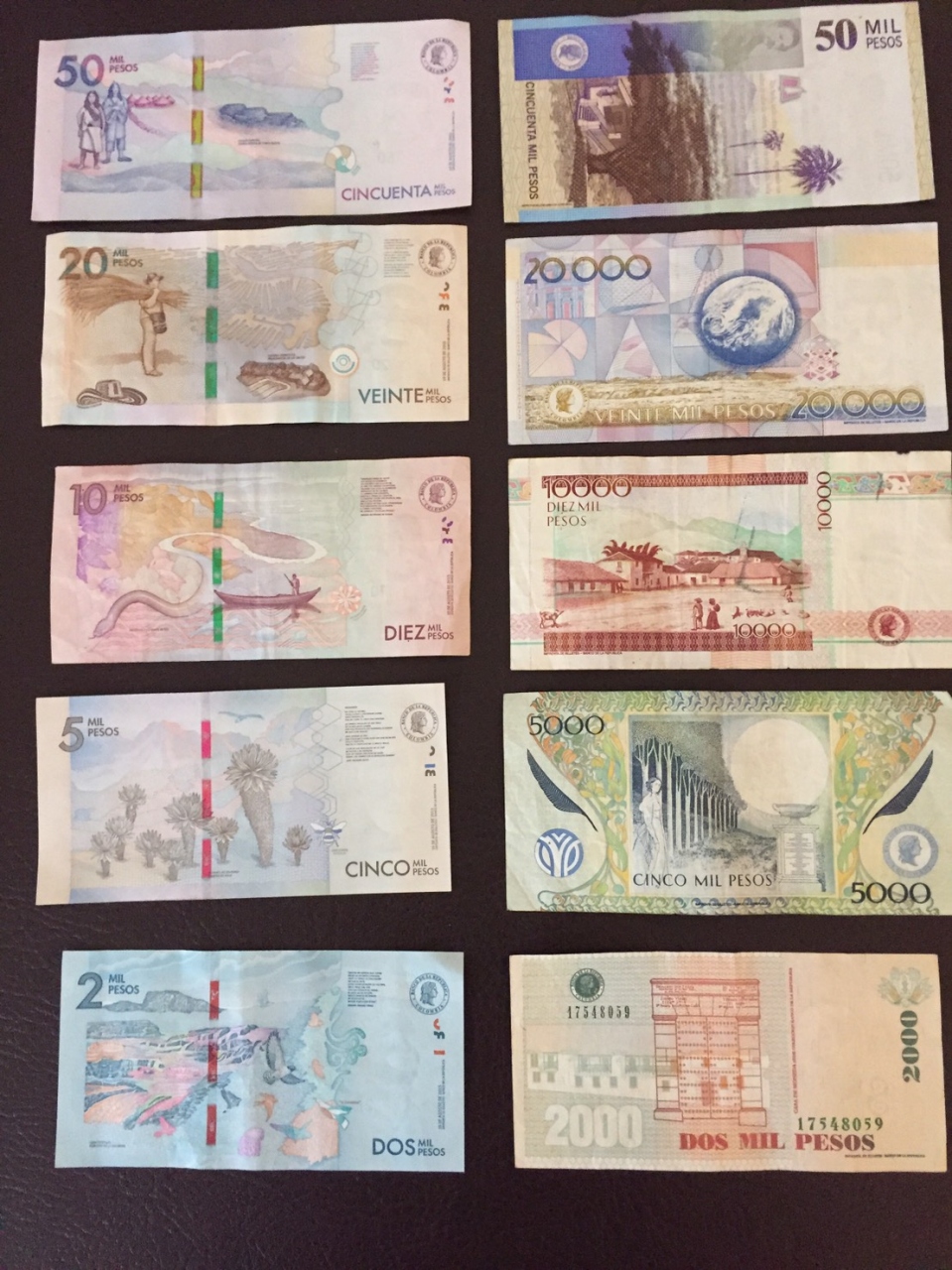首都ボゴタではわりと新札を見かけましたが、地方都市では未だほとんど旧札でした。