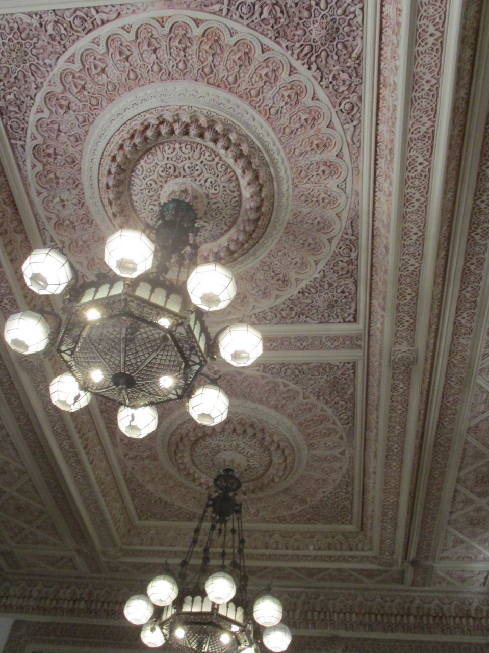 室内の大理石の太い柱に、細かいモザイク彫刻を施した漆喰の壁と天井、その高い天井からはゴージャスなシャンデリアと贅に贅を尽くして、建設費は何と150万ペソを要したそうです。