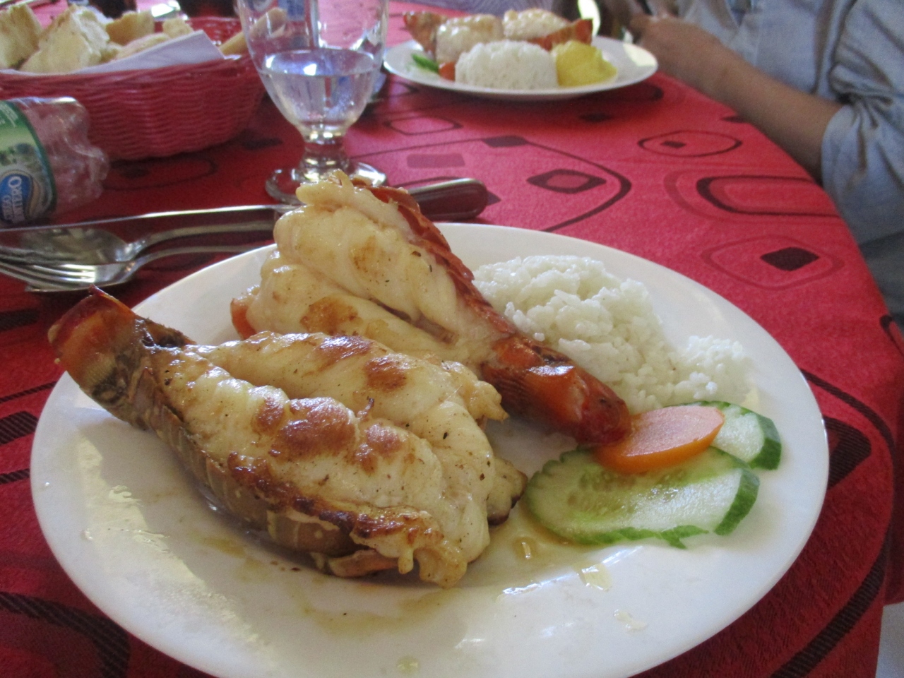 日本人旅行者に最も好まれているメニューは、ロンゴスタ(ロブスター)だそうで、ロブスターは程よくローストされていて、値段も20CUC(約2,300円)程度と、レストランの格式から考えると、決して高くは無く、小エビとのコンビネーションのお皿も用意されてありました。