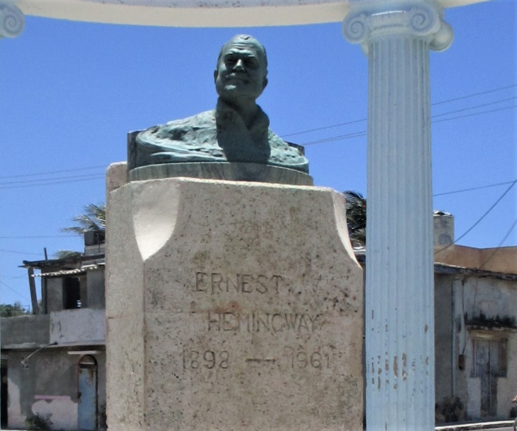 ヘミングウェイゆかりのレストラン「ラ・テラサ」の近くにある港に面した小さな要塞の脇の公園にあり、地元の村人たちが壊れた漁船のスクリューなどを溶かしてつくった胸像だそうです。