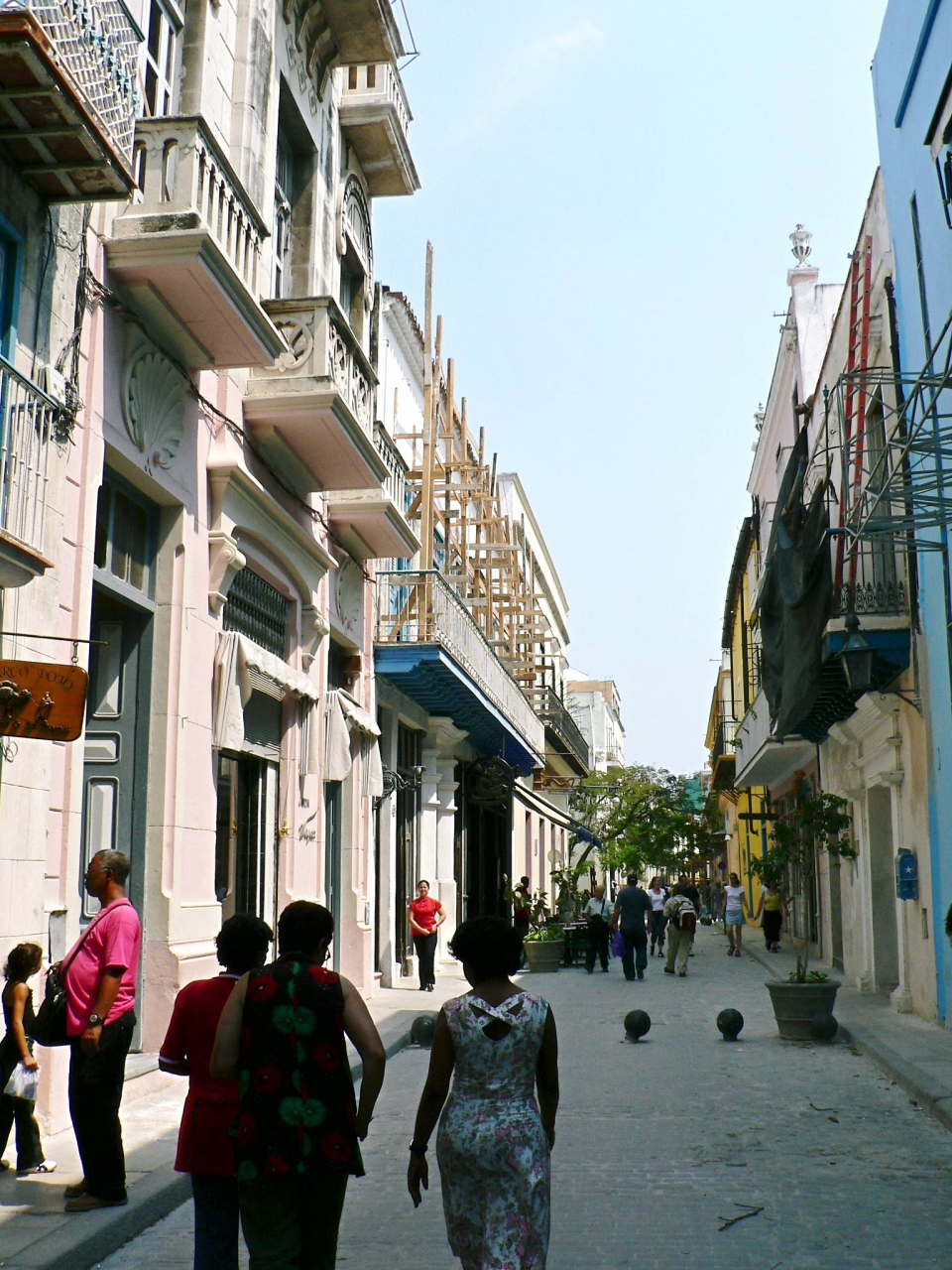 キューバ・ハバナの旧市街のオビスポ通りは人通りが多いにぎやかなショッピング街なのだが、ガイドが用事でいないときに一人でガイドブックを見ながら歩いていると、不審な男が「店を紹介する」と、声をかけてきた。断ると、腕を強くつかんで、しつこくついて来た。大声を出して手を振りほどくとようやくあきらめて去って行ったが、警備員もいるメイン通りでも観光客狙いのグループがいるので要注意。ガイドなど、ハバナに詳しい人と一緒に歩いたほうが良い。