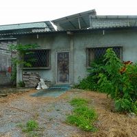 屋根はトタン屋根、壁の外装は塗装がまだ残っている。