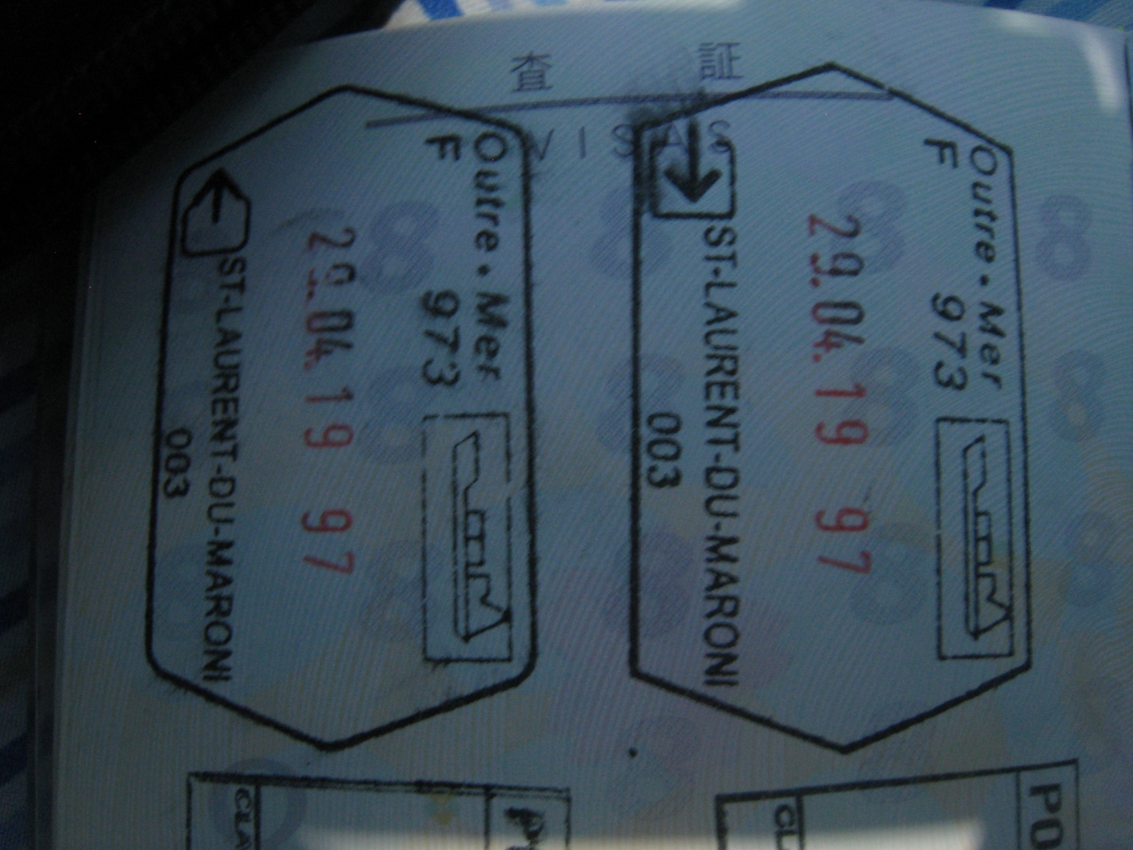 出国印はもらわずにフランス領ギアナに渡ったが、フランス領ギアナのパスポート印があれば入国印を押してくれる。必ず入国印をもらっておくことが必要。
