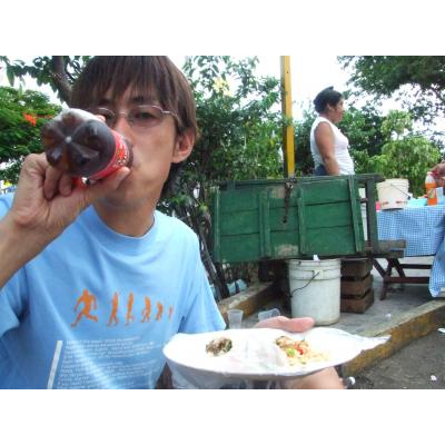 カンクンのバスターミナルのすぐそばでタコスの屋台があるんですけど、これがうまい。メキシコシティやカンクンのセントロ、日本で食べたタコスのどこよりもうまい。ですがこれにはとってもからーいソースを自分でつけることができます。