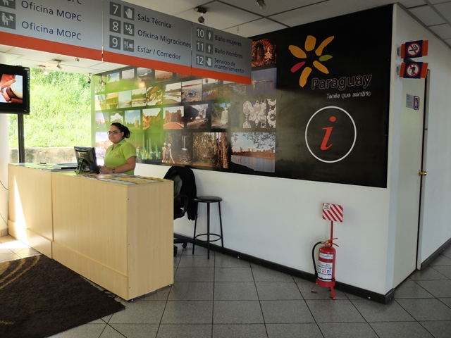 ブラジルのフォス・ド・イグアスの町から、パラナ川に架かる友情の橋(アミスター橋)を渡ってシウダー・デル・エステに入った所に税関の建物があり、中には観光案内所も入っています。 地図や観光資料をもらおうと行ってみたところ、英語堪能な女性スタッフがいて、親切にシウダー・デル・エステの地図に説明をつけてくれました。 私が日本人だと分かると、日本語の観光案内パンフも出してくれてびっくり。 ほかにもお店紹介などの資料も結構あったので、寄って行くといいと思います。