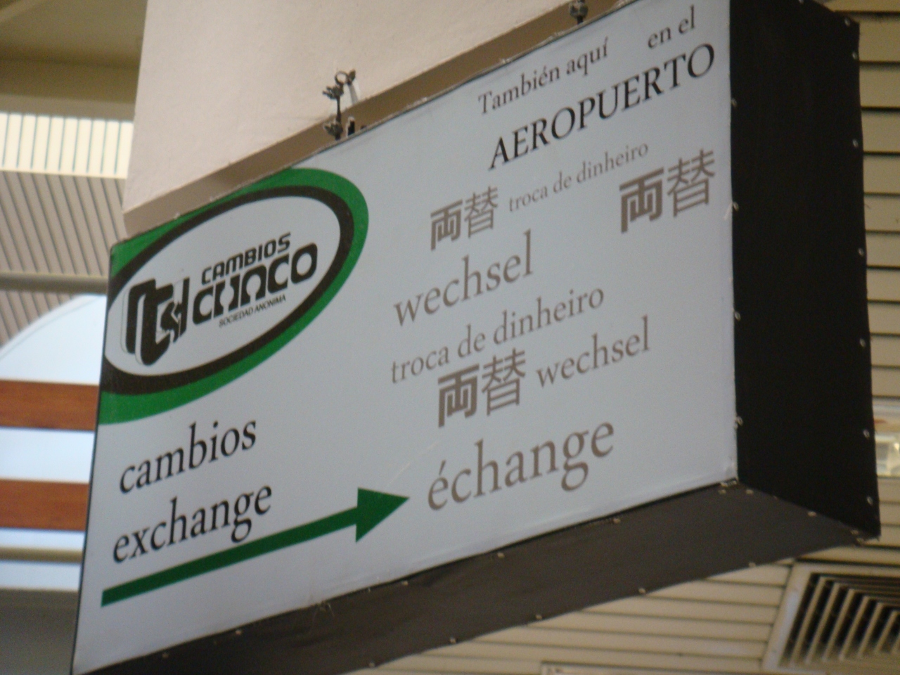 空港ビルで両替をするなら、COMPRAの場合は、搭乗者しか入れない場所にある両替所より、誰でも利用できるプランタバッハとプリメロピソにあるレートの良い両替所をお勧めします。レートが良い両替所は、店名が緑色の文字です。悪い方は、青色の文字です。